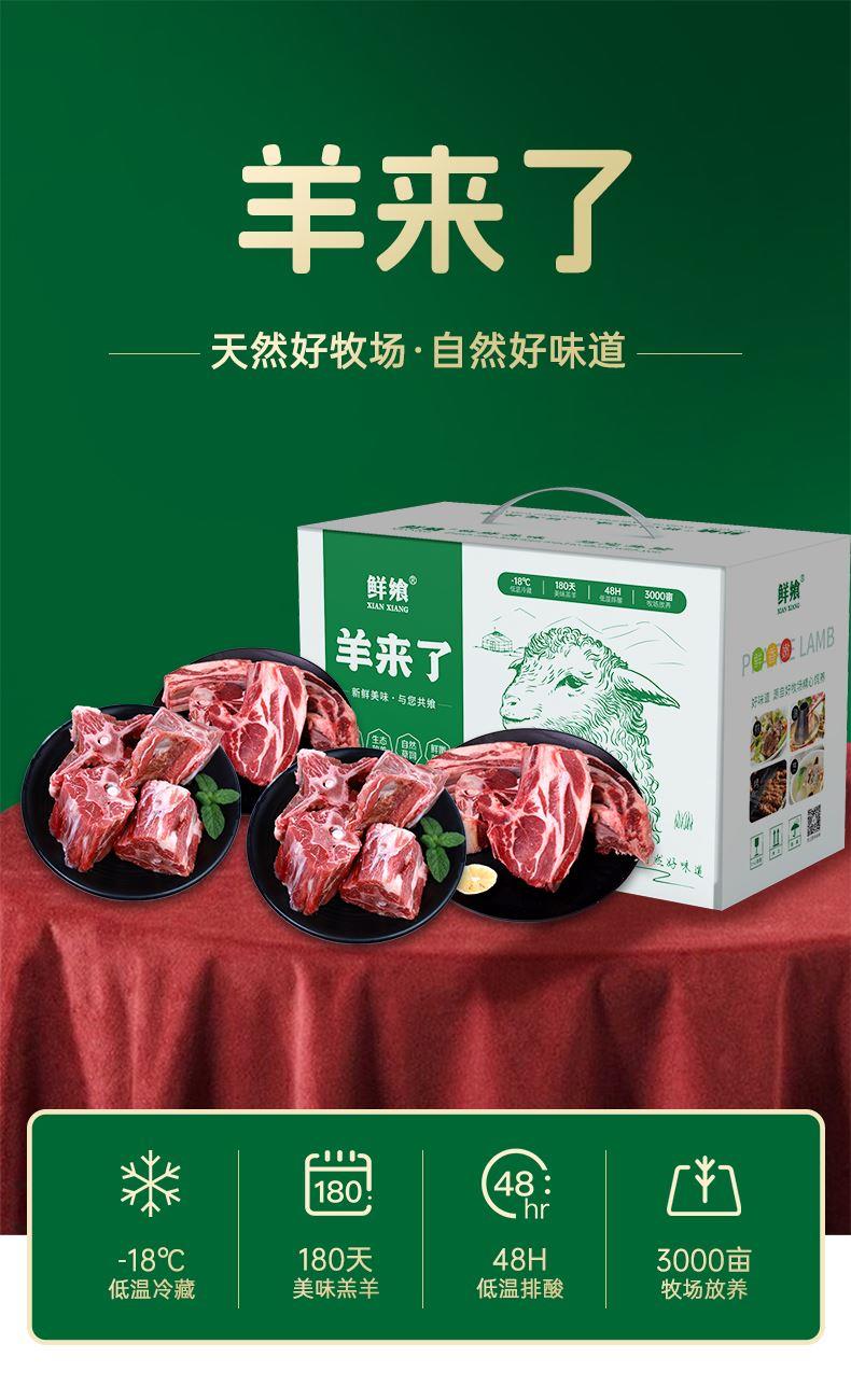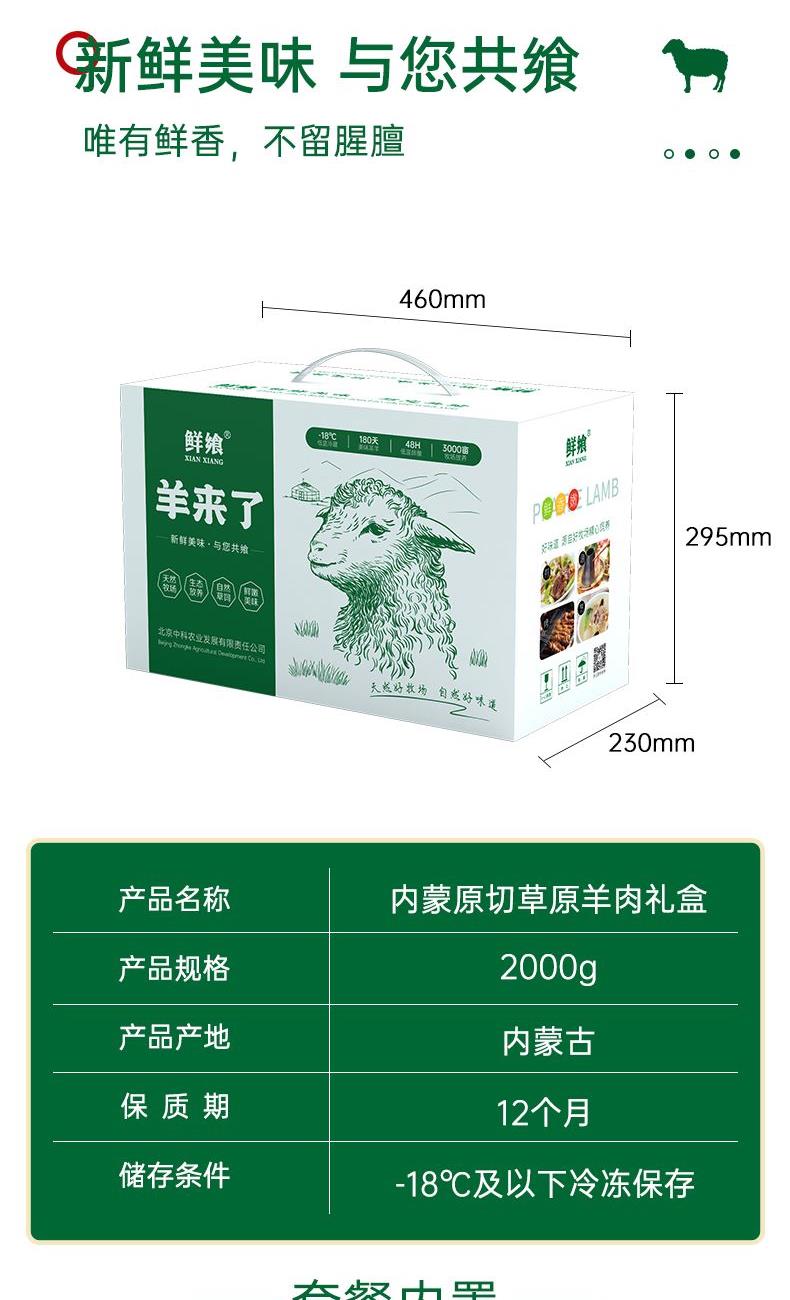 鲜飨内蒙原切草原羊肉398礼盒2000g