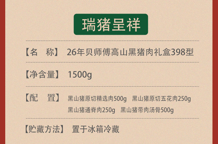 26年贝师傅高山黑猪肉礼盒398型-瑞猪呈祥