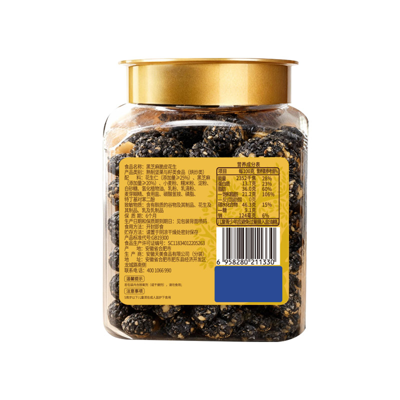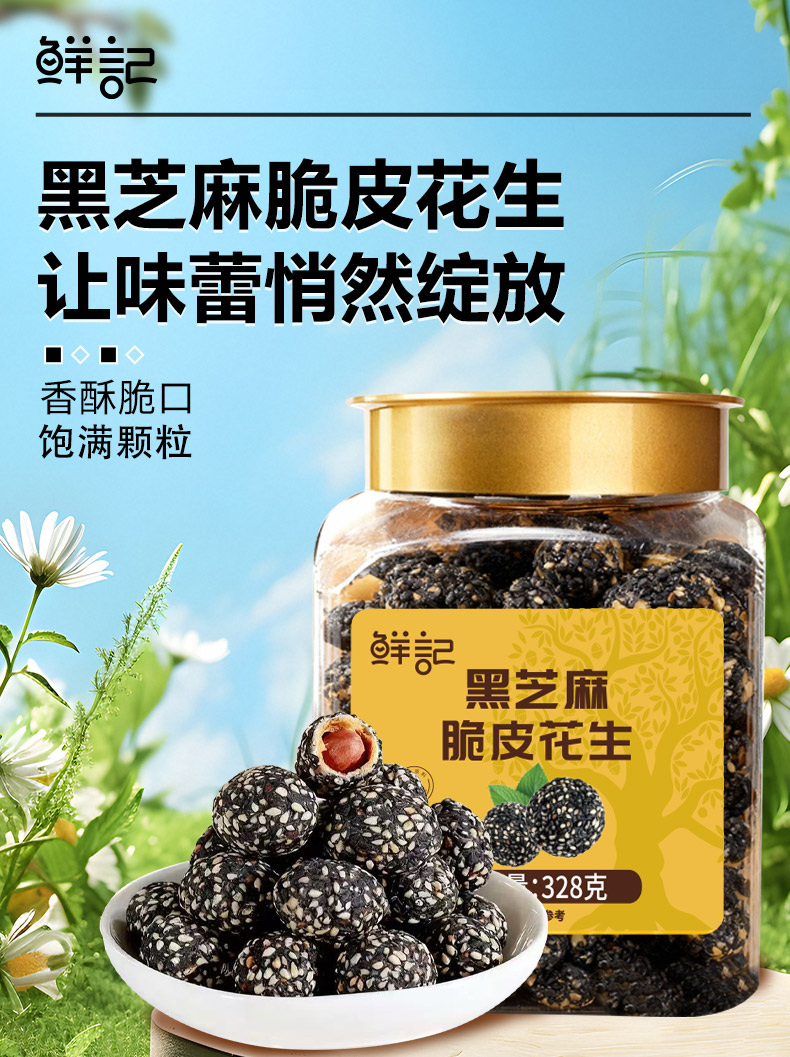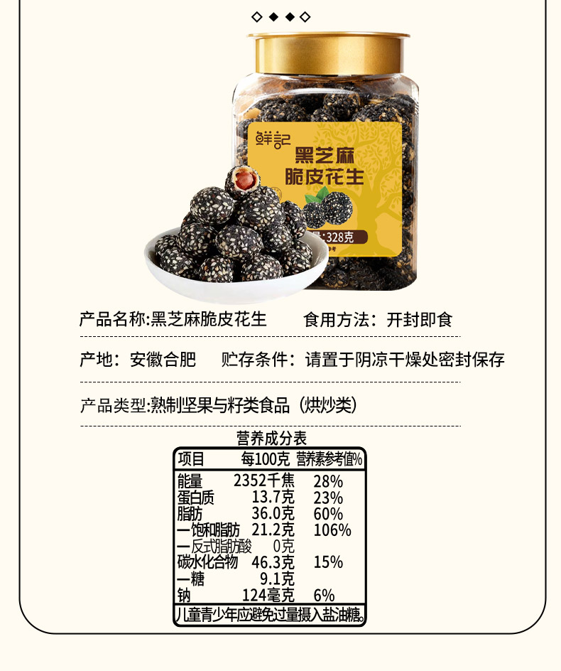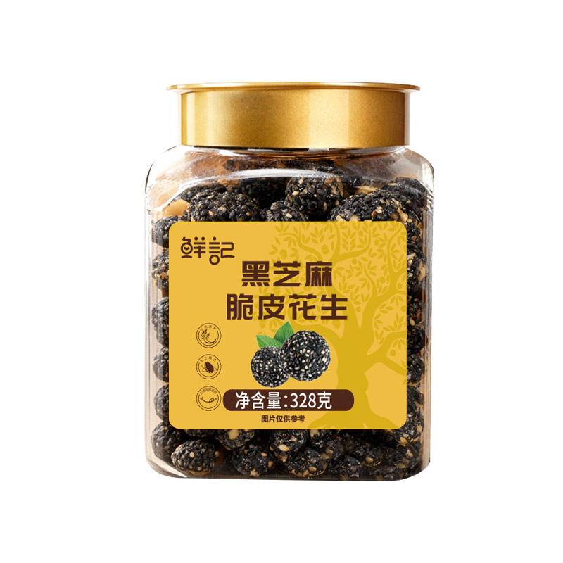 鲜记黑芝麻脆皮花生328g(博士帽罐装)