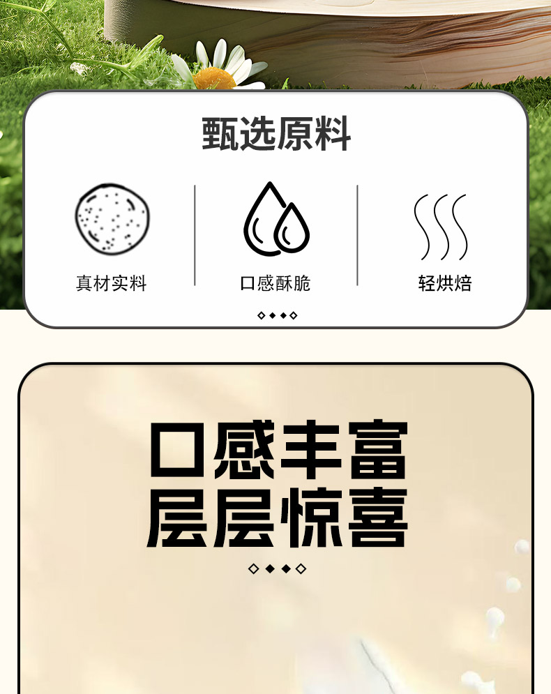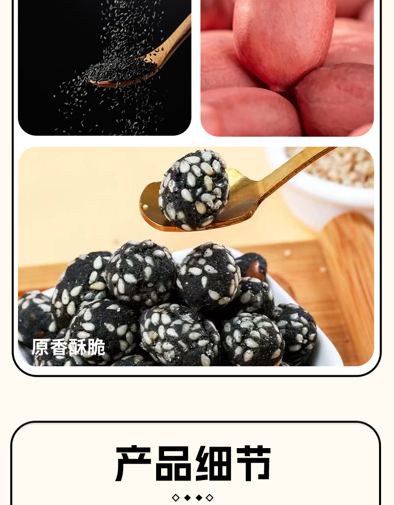 1:颗粒饱满,香酥脆口; 2:真材实料,目然原香; 3:罐装锁鲜,口口美味。