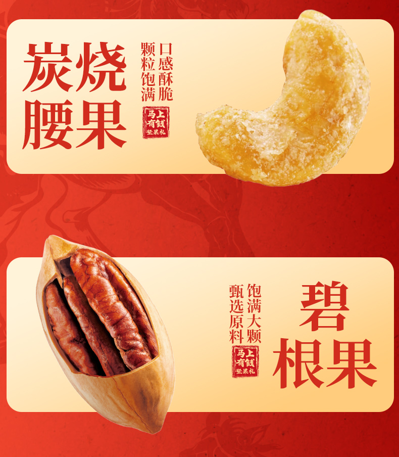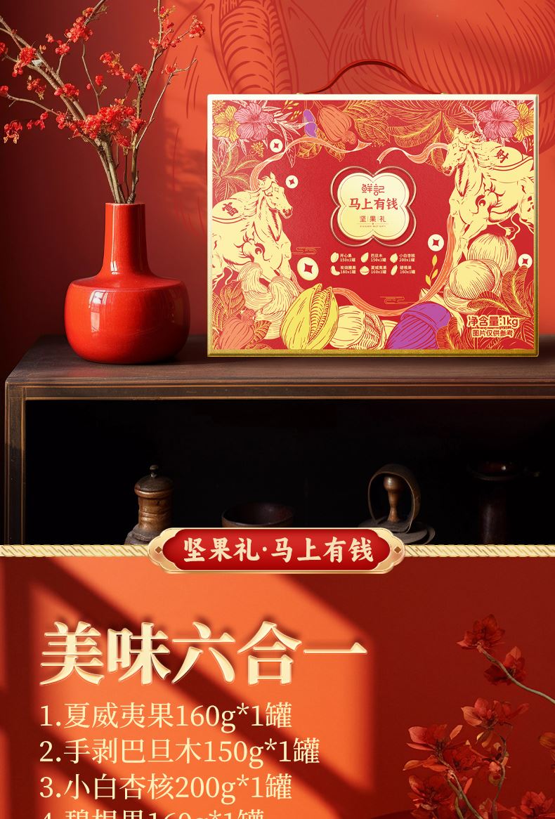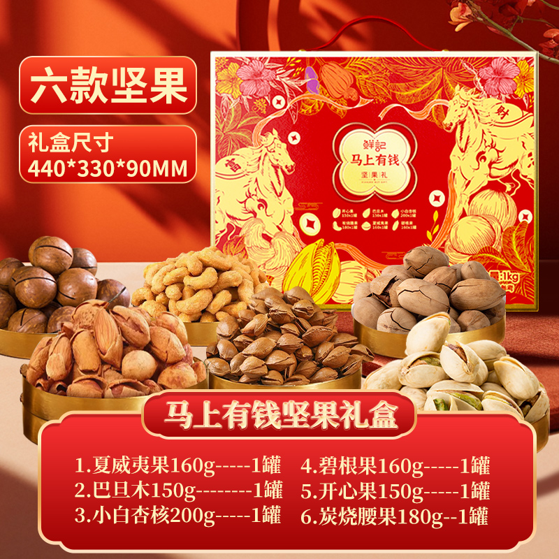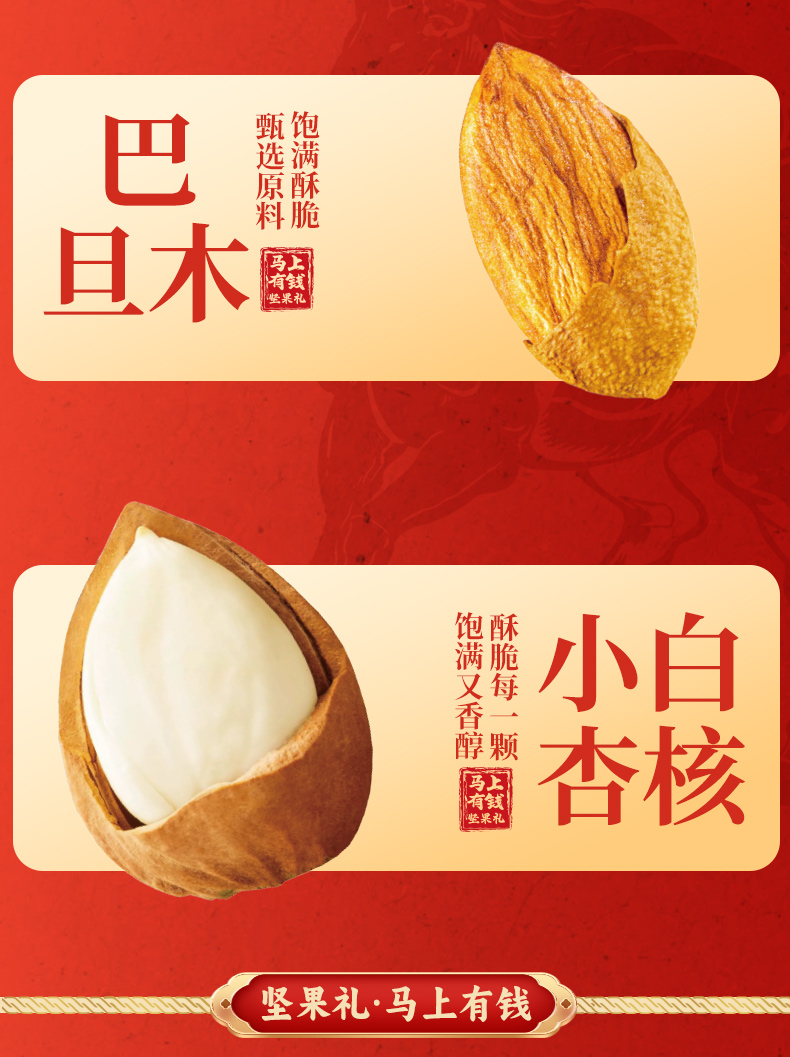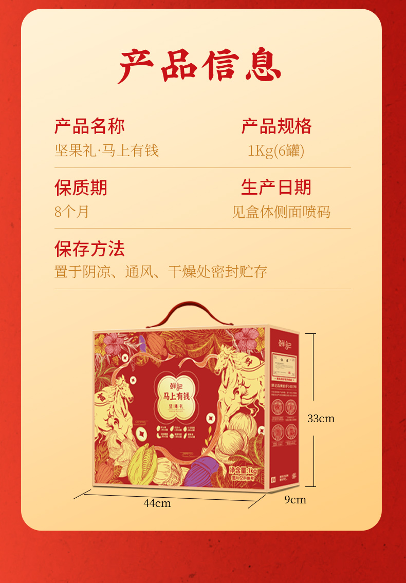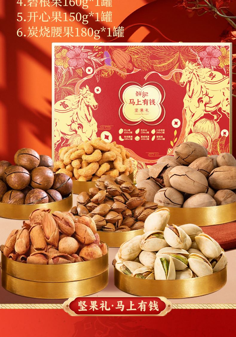 1:6罐纯坚果,美味六合一; 2:颗粒饱满,酥脆可口; 3:甄选纯坚果礼,礼赠有格调。