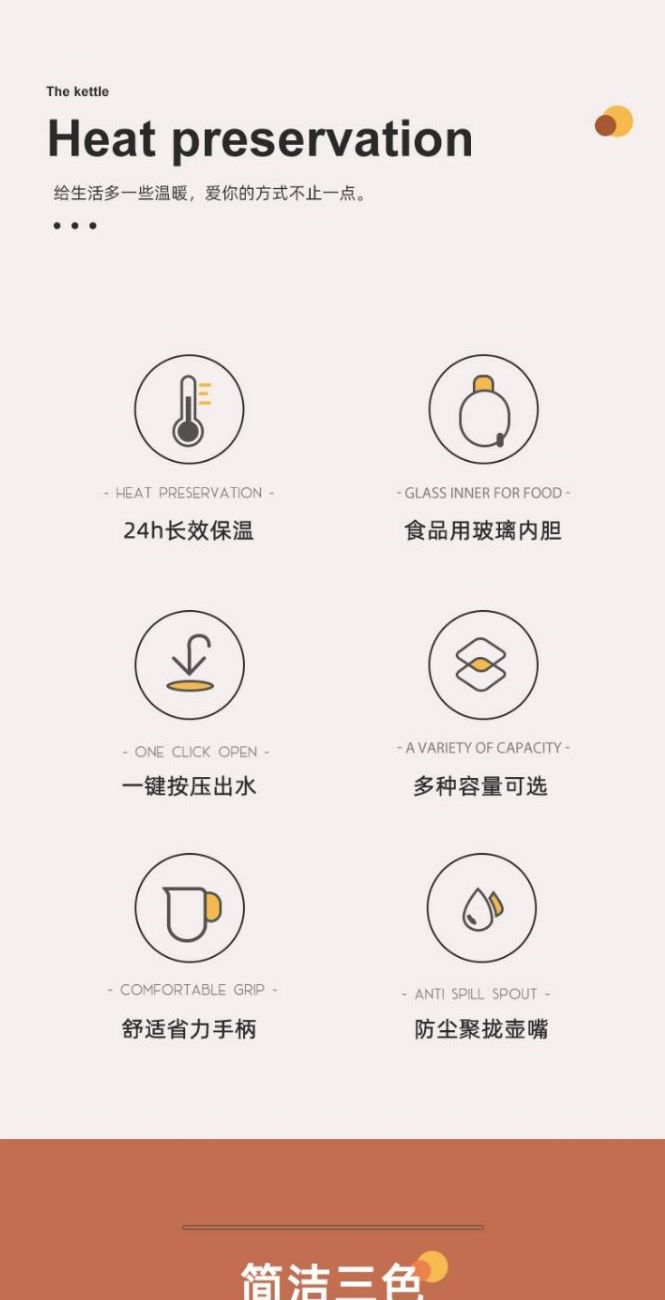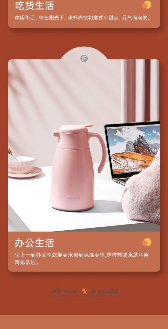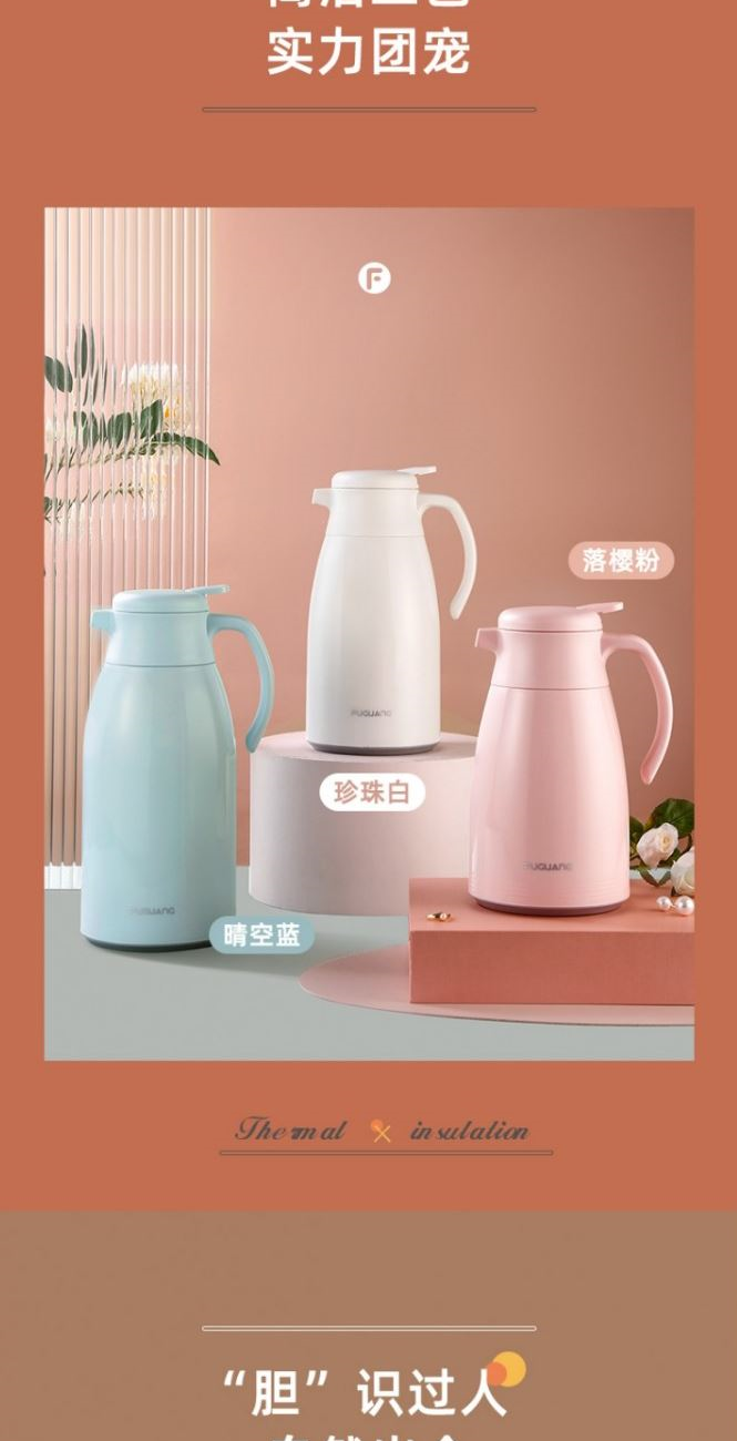 颜色:落樱粉 珍珠白 清空蓝 尺寸:251*135*165mm 材质:食品级PP塑料外壳 内外胆双层玻璃层真空隔热镀银层 食品用玻璃内胆,抽真空保温内胆镀银工艺,保温更强劲。 包装:单瓦盒