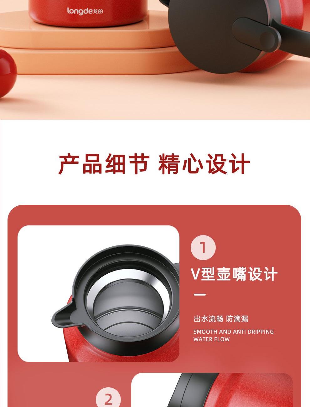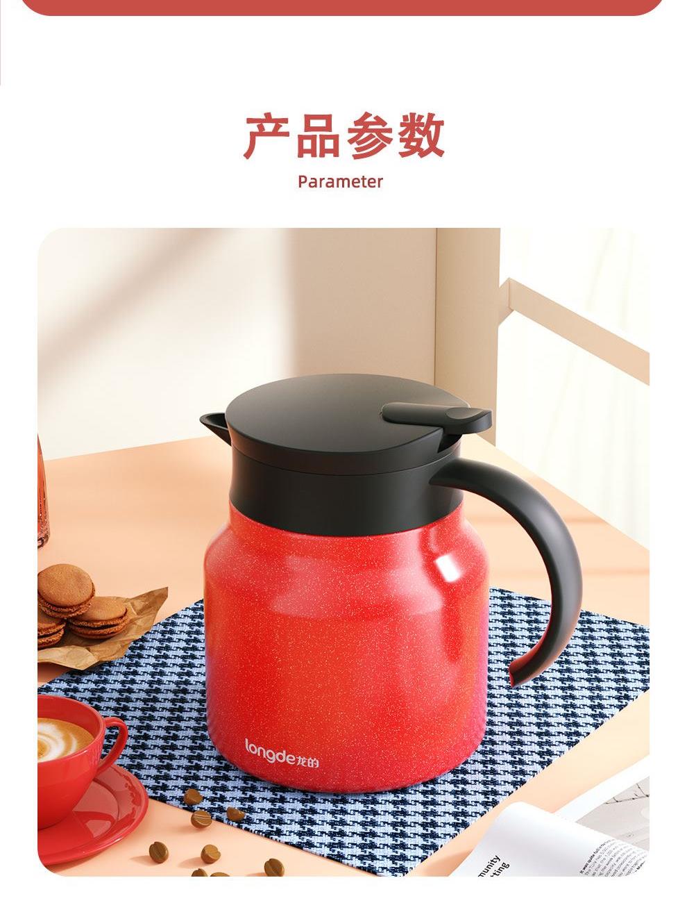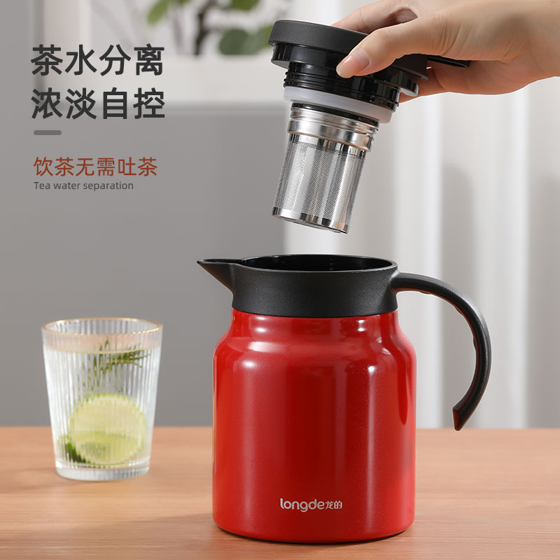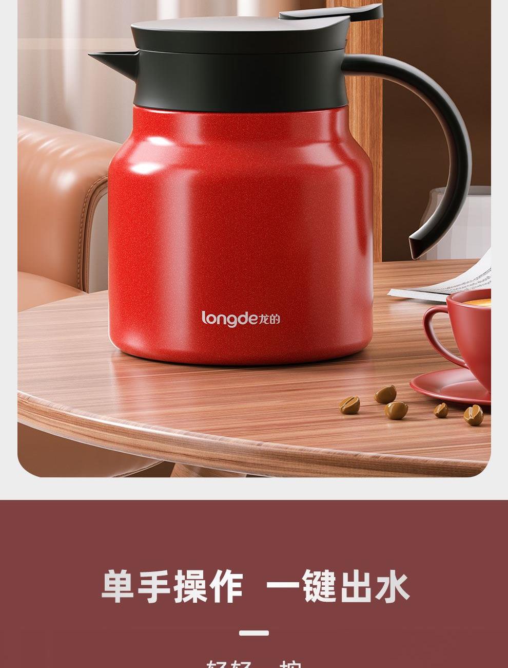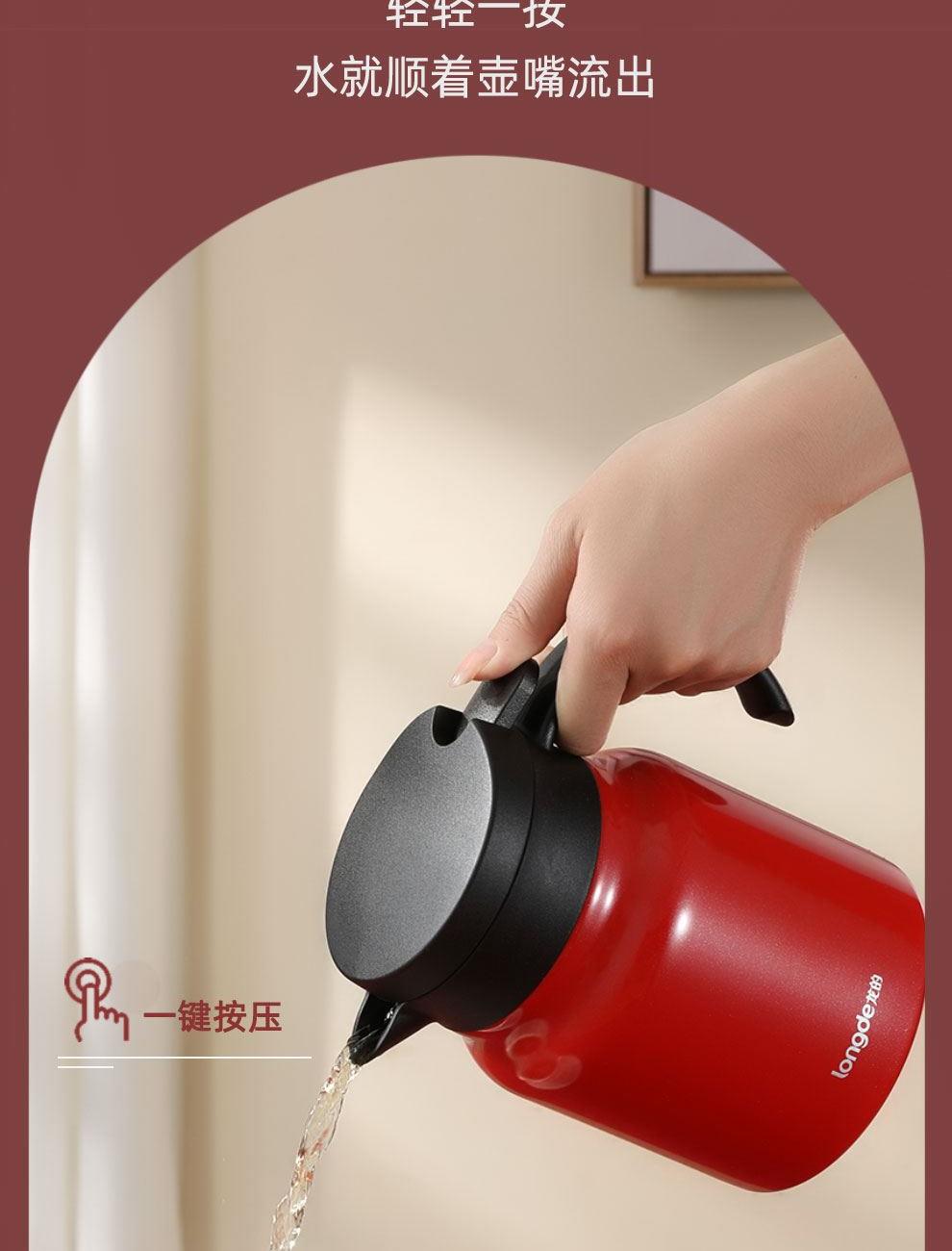 产品容量:1000mL 产品材质:SUS304+PP 产品净重:0.49kg 产品毛重:0.53kg 整箱重量:22.3kg 装 箱 数:40台/箱 SUS304壶体茶漏食品级304电解研磨内胆茶漏,红色烤漆壶身 冷热双保双层抽真空,冷热两用,长效保温 按压出水一键按压出水 硅胶密封食品级硅胶密封圈,不易漏