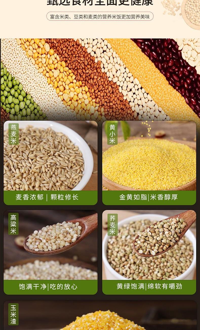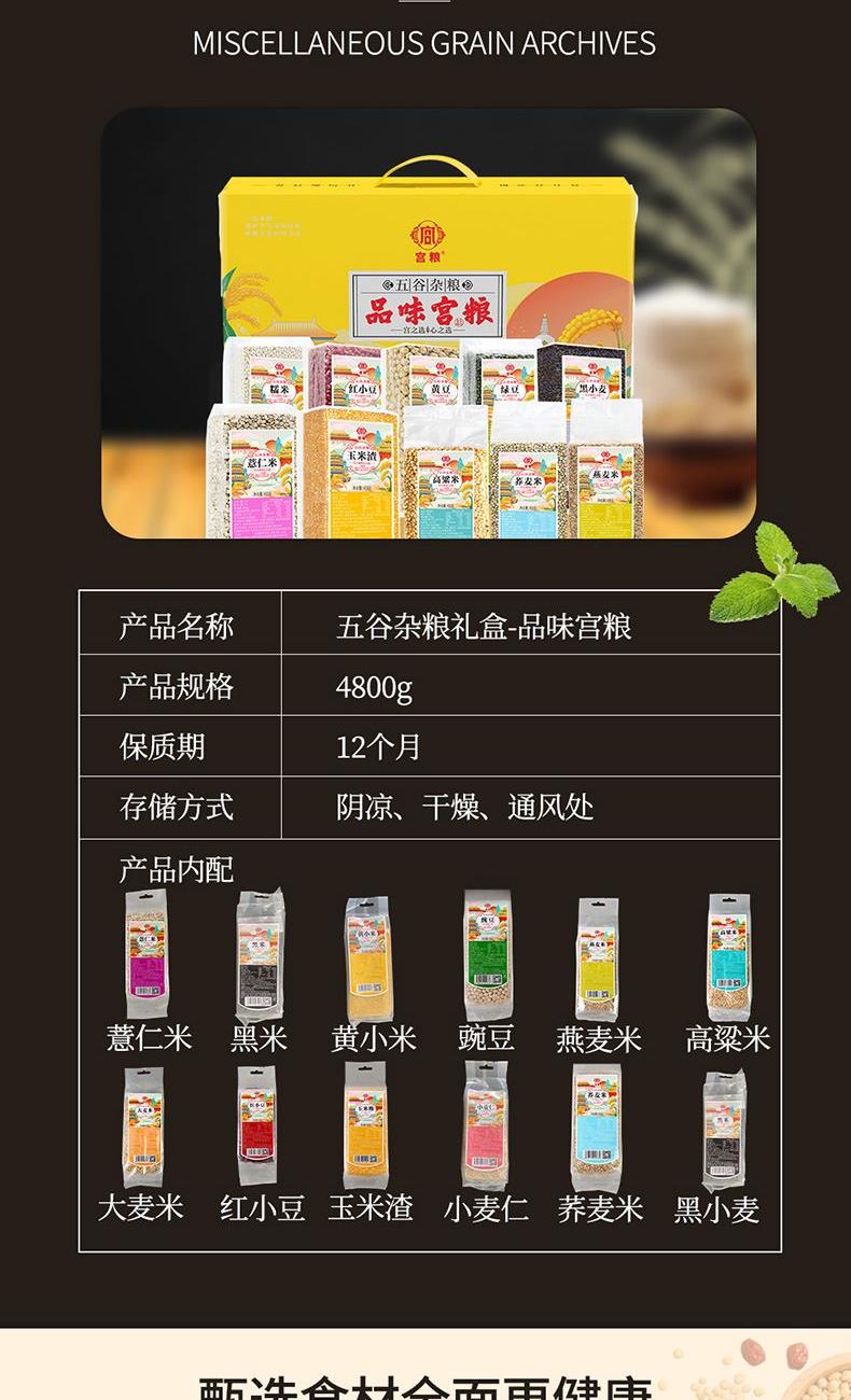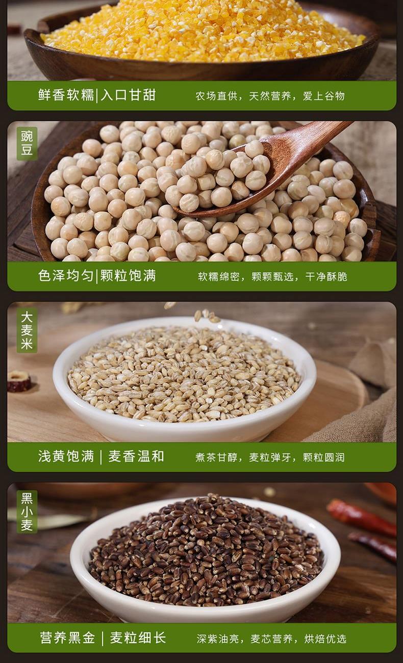 宫粮薏仁米400g,宫粮黑米400g 宫粮黄小米400g,宫粮豌豆400g 宫粮燕麦米400g,宫粮高粱米400g 宫粮大麦米400g,宫粮红小豆400g 宫粮玉米渣400g,宫粮小麦仁400g 宫粮荞麦米400g,宫粮黑小麦400g 美好的生活从营养开始 选用低卡谷米,拒绝染色,还原谷物原本的味道。 多元粗粮科学配比,合理搭配,营养丰富,健康看得见。