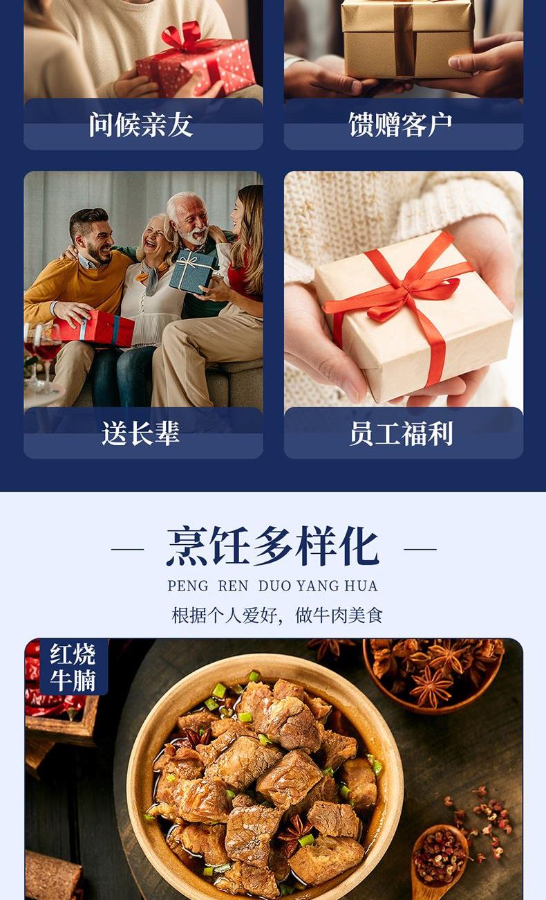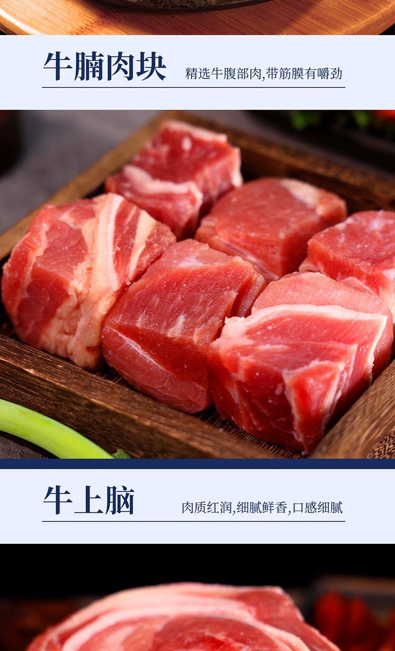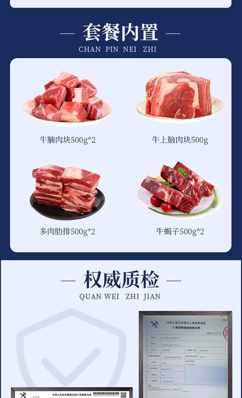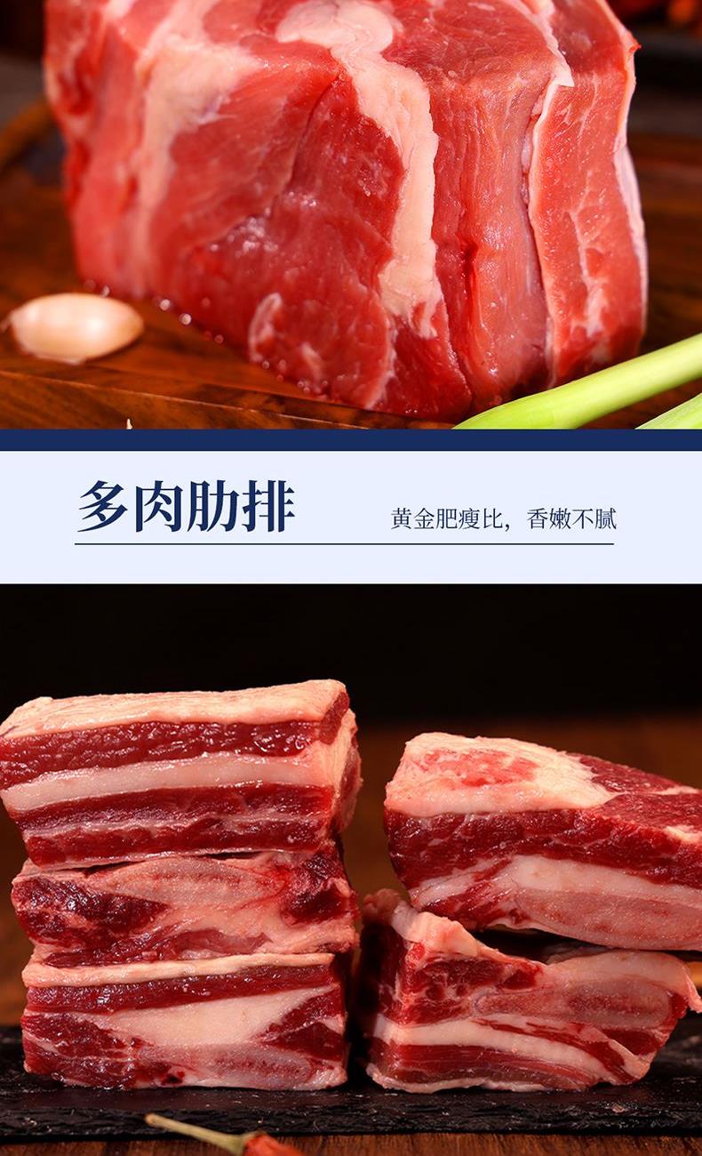 配置:澳洲谷饲安格斯牛腩肉块500g*2 澳洲谷饲安格斯牛上脑肉块500g 澳洲谷饲安格斯多肉肋排500*2 澳洲洲谷饲安格斯牛蝎子500g*2 卖点:1.礼盒包含了肉、骨,在家也能做出满满的美味佳肴。 2.原切肉不添加任何添加剂,食用更放心! 3.礼盒精美承载心意与祝福!