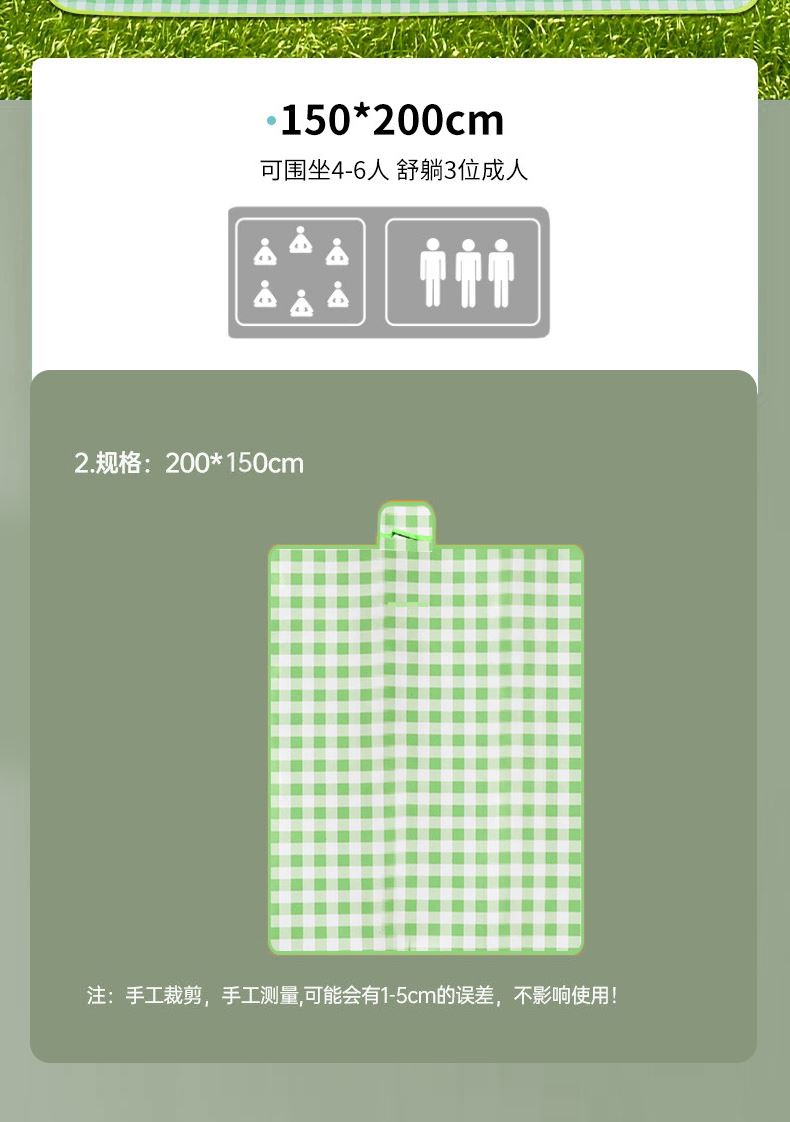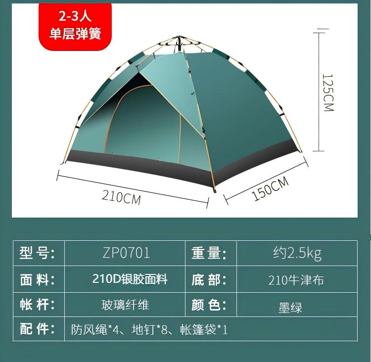 配置:帐篷+野餐垫+吊床 帐篷材质:210D银胶面料+玻璃纤维杆 野餐垫材质:600D牛津布 +背部防水PVC 吊床材质:帆布 帐篷尺寸:150*210*125cm 野餐垫尺寸:200*150cm 吊床尺寸:80*190cm 商品重量:4.5kg