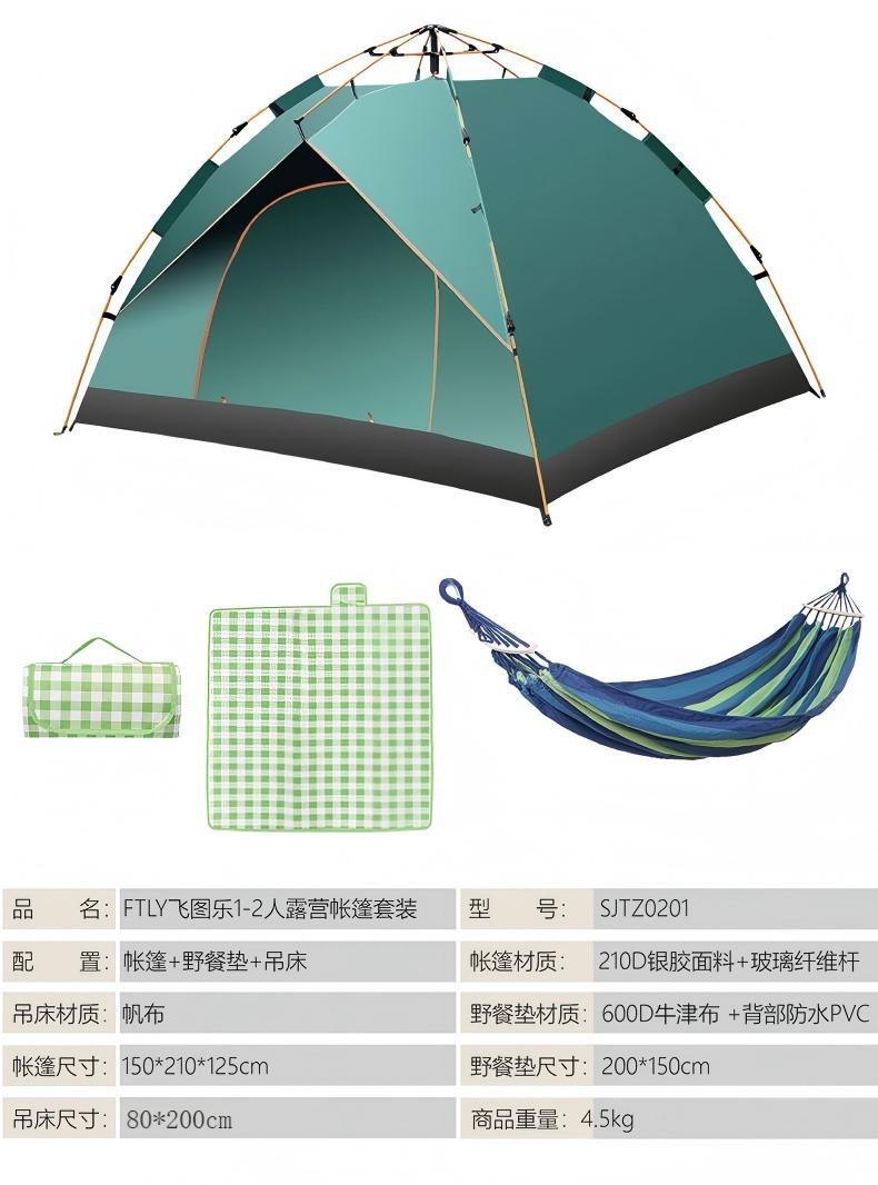 FTLY飞图乐1-2人露营帐篷套装(帐篷+野餐垫+吊床)